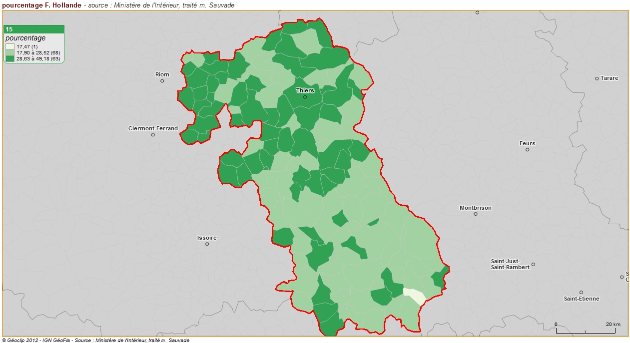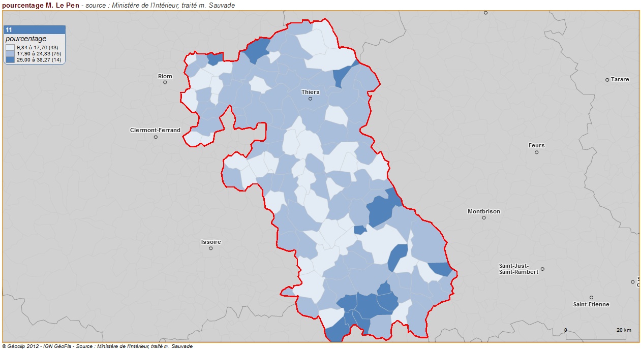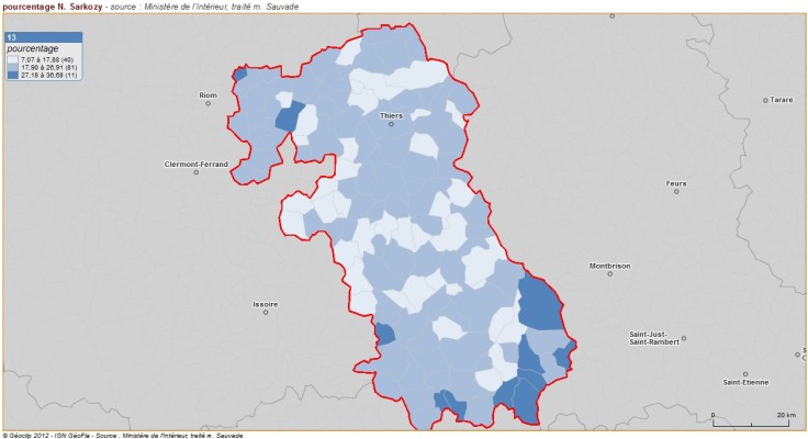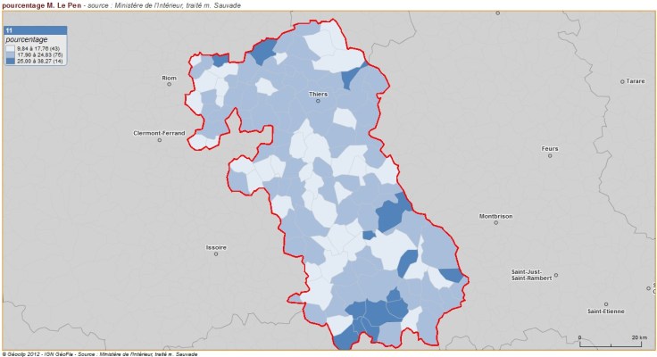 Ceci souligne à l’évidence la frature géographique et politique entre villes et campagnes : elle apparaît partout en France et souligne le sentiment d’abandon qui affecte les espaces ruraux. Dans le Puy de Dôme, cela se traduit par un désaveu aussi bien de l’Etat UMP que du socialisme local, englué dans ses féodalités et incapable d’avoir une véritable vision d’aménagement et de développement.